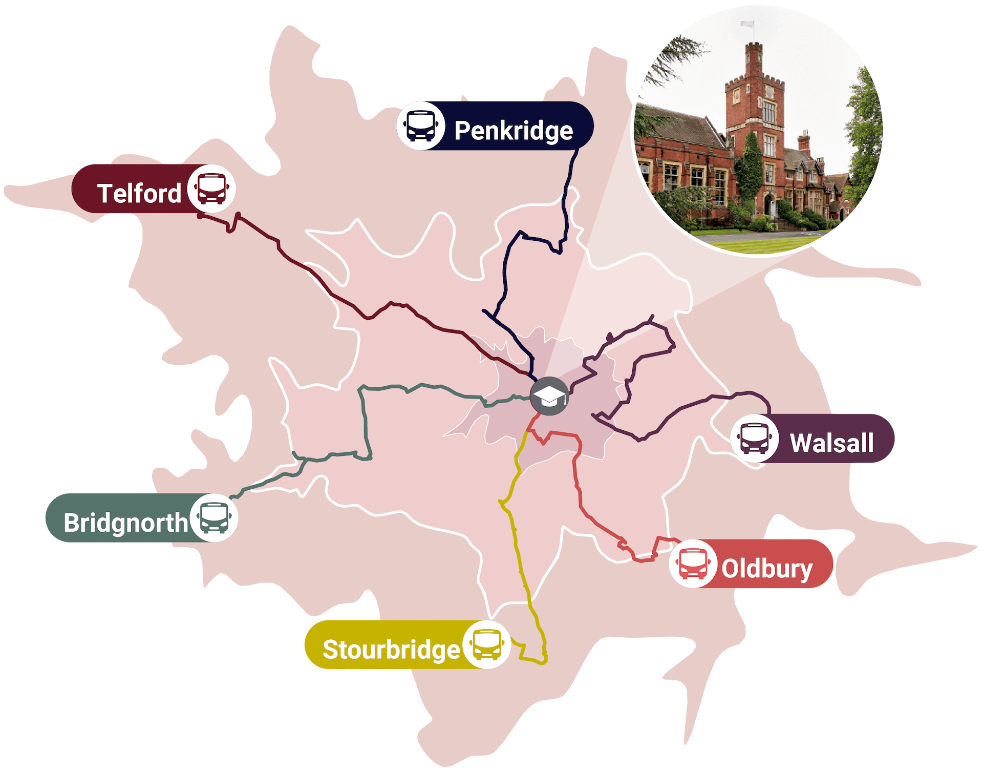 In addition to excellent public transportation links on offer, the School also operates its own Bus and Coach services (in collaboration with Hills Coaches) offering flexible one way and return journey options covering three counties (Shropshire, Staffordshire and the wider West Midlands).